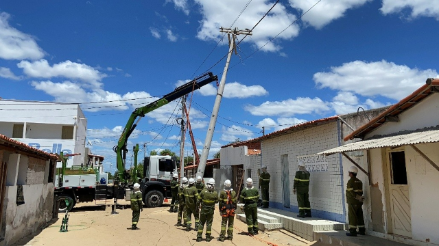 Entre manutenções preventivas, melhoramentos e expansão da rede de distribuição de energia, as intervenções mobilizam quase 20 eletricistas recém-formados no Curso de Obras e Manutenção Pesada promovido pela Neoenergia Cosern e Fundação de Apoio à Tecnologia (FAT), caminhões tipo guindautos e veículos com tração nas quatro rodas.