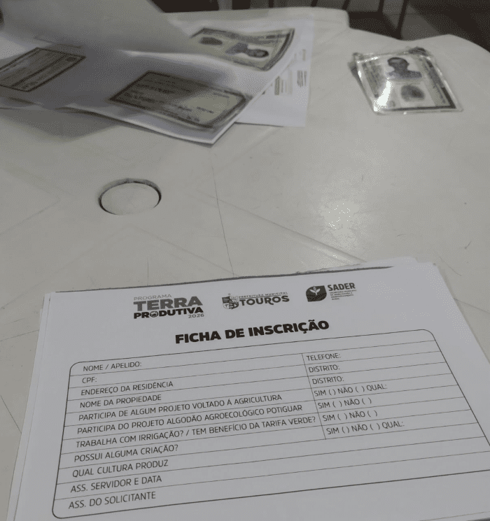 Durante toda manhã desta sexta-feira, 16 de janeiro de 2026, a equipe da secretaria de Agricultura e Desenvolvimento rural do município de Touros, realizam cadastros do Programa Terra Produtiva 2026 junto a agricultores e agricultoras da Agrovila Cajá.