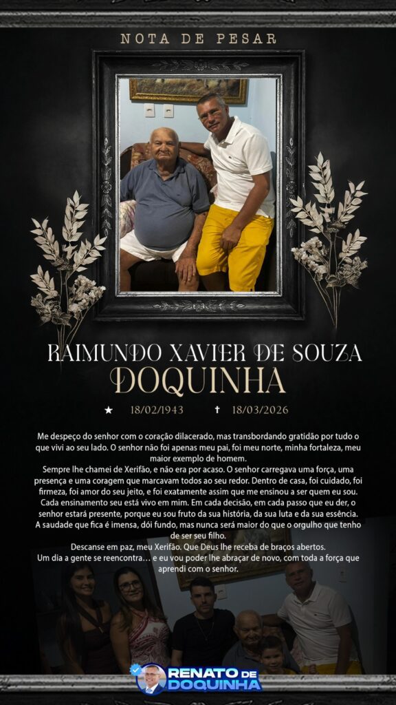 Por meio das redes sociais, o ex-prefeito Renato de Doquinha publicou uma homenagem ao pai, destacando sua trajetória de vida e o legado deixado à família e à população local.