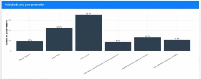 A pesquisa Metadata/Grupo Dial, divulgada no Repórter 98 nesta quarta (1), mostra Allyson Bezerra como pré-candidato ao governo com a menor rejeição entre os nomes colocados em Natal, com 9,5%, enquanto Álvaro Dias, ex-prefeito da capital e aliado do prefeito Paulinho Freire, marca 22,4%. A diferença chega a mais de 12 pontos dentro da cidade onde Álvaro construiu trajetória política, diante do ex-prefeito mossoroense.